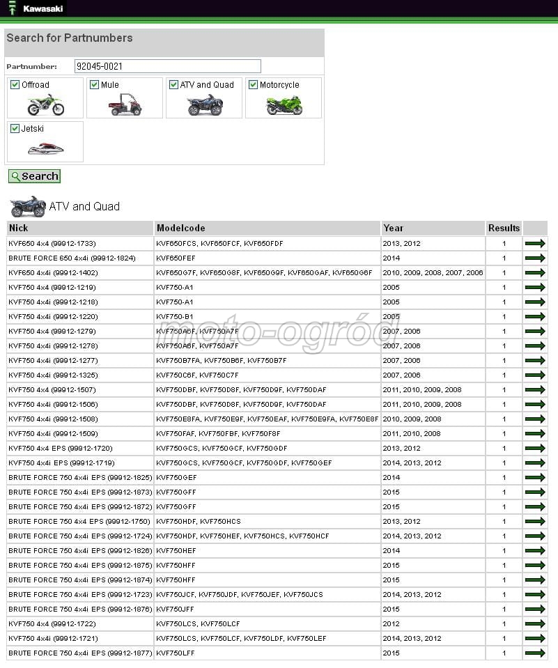 BRUTE FORCE 750 4x4i (99912-1325) KVF750C6F, KVF750C7F 2006, 2007- KVF750 4x4 (99912-1507) KVF750D8F, KVF750D9F, KVF750DAF, KVF750DBF 2008, 2009, 2010, 2011