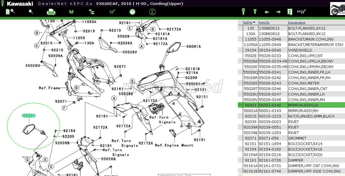 Lusterko lewe Kawasaki ER-6F 2009-2011
