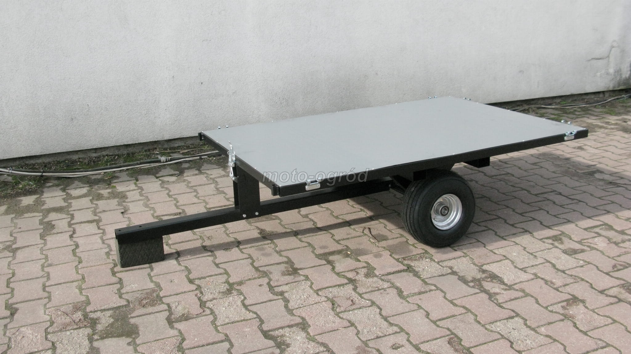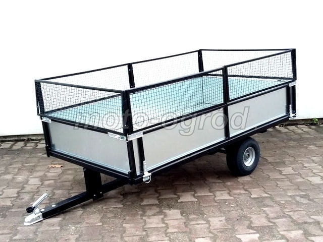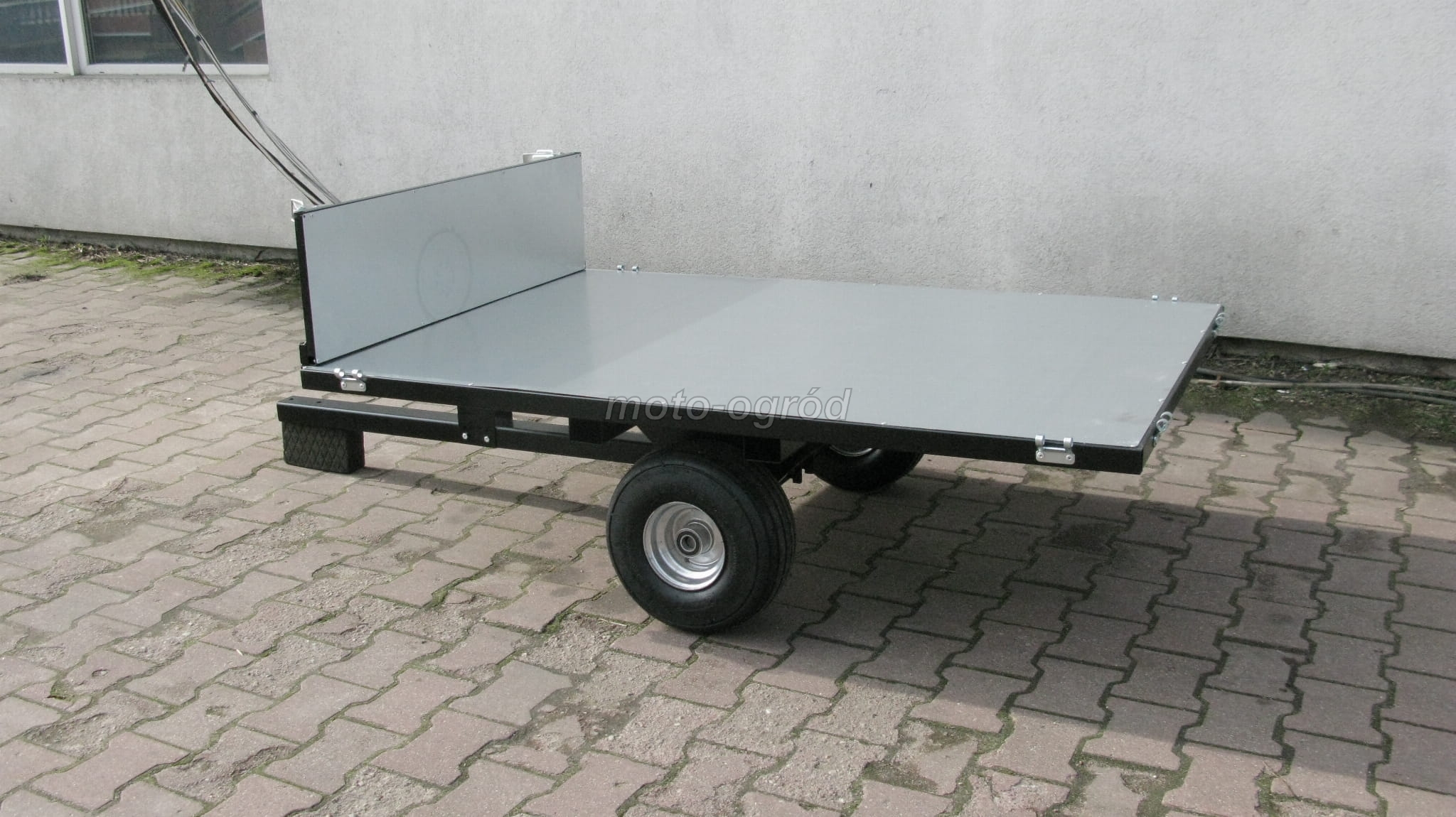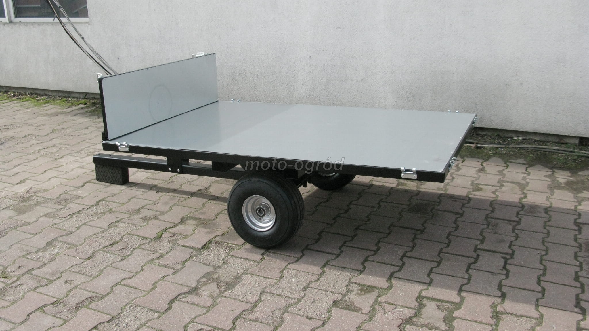Wykonana blachy o grubości 1,0 mm, skrzynia ładunkowa spawana, wsporniki kół i dyszel z blachy o grubości 4 mm, wszystkie elementy malowane proszkowo. Oś nośna przestawna ze specjalnej stali o grubości 25 mm, koła balonowe 15" o wysokiej wytrzymałości, na łożyskach kulkowych. Wszystkie burty zdejmowane. Ładowność 600 kg. Możliwość zastosowania nadstawek - opcja.