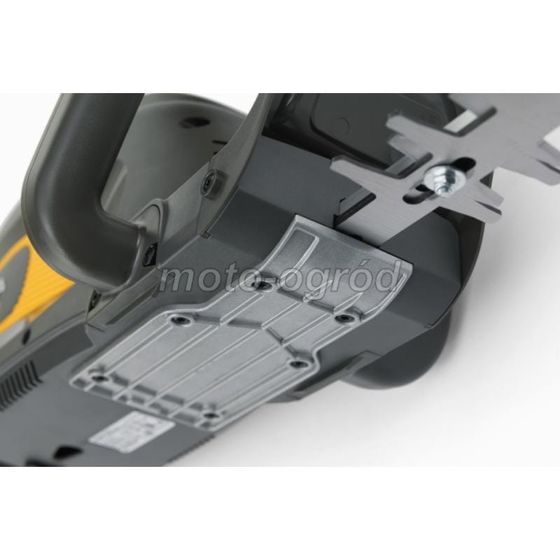 Dzięki dwufunkcyjnej, synchronizowanej przekładni, która zasila dwa ostrza z prędkością 3500 obr / min, elektryczne nożyce do żywopłotu SHT 700 umożliwiają ciągłe cięcie do 50 minut na jednym ładowaniu. Podwójne ostrza wycinane laserowo o długości 58 cm z łatwością przecinają gałęzie o średnicy do 2,6 cm. Dla Twojej wygody możesz ustawić uchwyt na +/- 180 ° w trzech różnych pozycjach. Dla optymalnego bezpieczeństwa, osłona dłoni chroni Cię podczas pracy. Ergonomiczna rękojeść tylna wykonana jest z miękkiej gumy, dzięki czemu korzystanie z niej jest zawsze przyjemne. Aby chronić nożyce do żywopłotu przed uszkodzeniem na twardych powierzchniach, SHT 700 jest wyposażony w poręczną ochronę końcówki ostrza. Posiada wygodny otwór do zawieszania, dzięki czemu można go łatwo przechowywać. Brak akumulatora oraz ładowarki w zestawie.