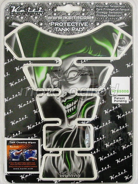 Tankpady Keiti charakteryzują się bardzo rzetelnym wykonaniem i wysoką jakością grafiki. Dzięki nim nie tylko skutecznie zabezpieczysz zbiornik motocyklowy przed zarysowaniem ale i ozdobisz, nadając motocyklowi oryginalny wygląd. Mocny klej, nie powodujący uszkodzenia lakieru, przytrzyma tankpad nawet na najbardziej zaoblonej powierzchni zbiornika. Do każdego tankpadu załączona jest ściereczka ułatwiająca odtłuszczanie powierzchni, na której ma zostać naklejony tankpad.