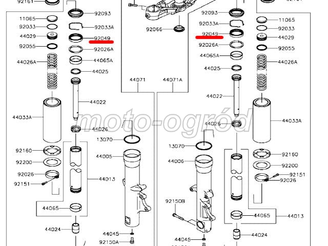 Oryginalne uszczelniacze przednich amortyzatorów Kawasaki.