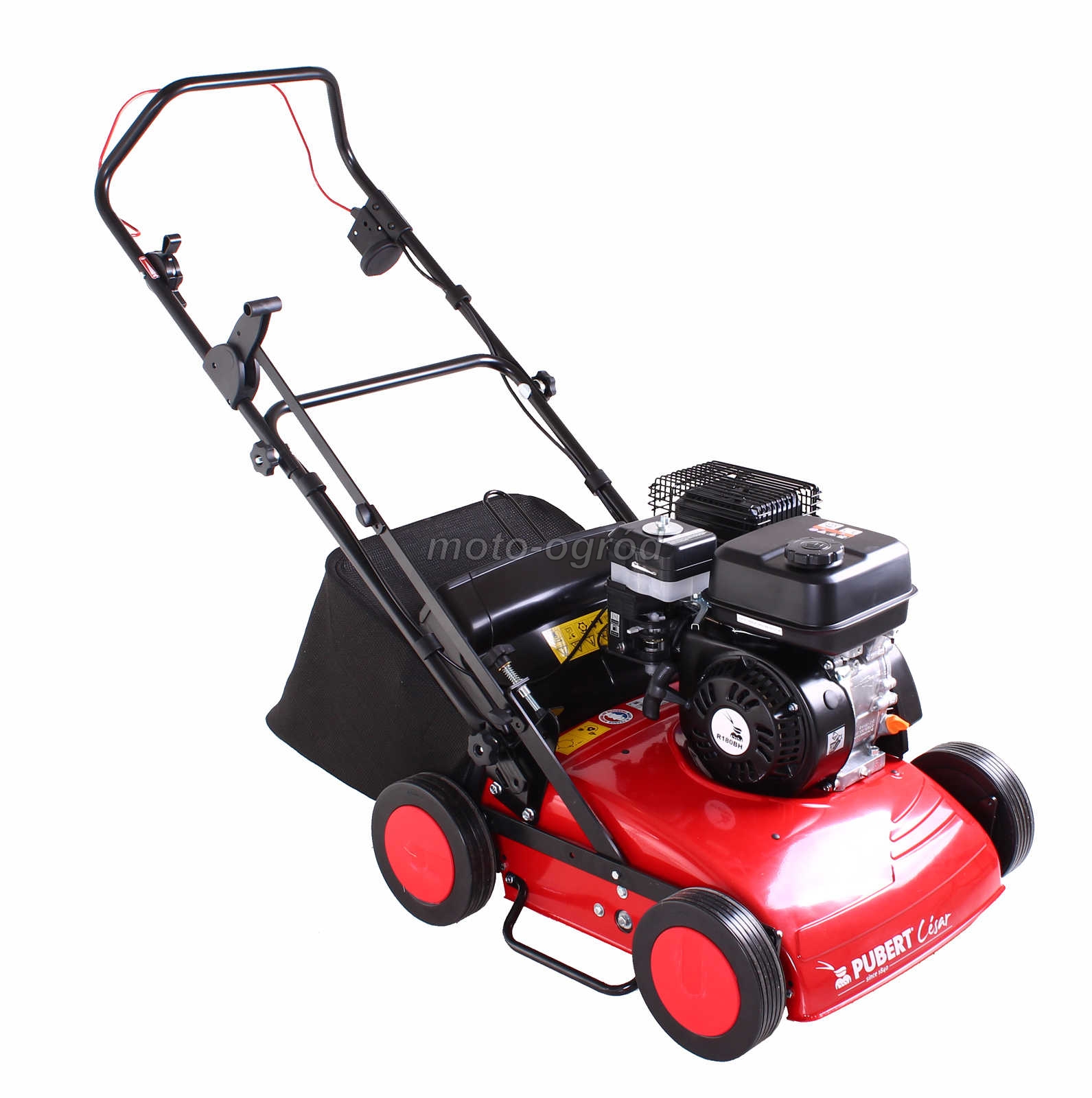 Wertykulator spalinowy CESAR jest idealnym narzędziem do napowietrzania i regeneracji trawnika. Obudowa tego wertykulatora, o szerokości 38cm, wykonana jest z jednego arkusza blachy o grubości 3mm, aby zapewnić stabilność, sztywność i wytrzymałość konstrukcji. Łatwy w obsłudze system sterowania wertykulatorem z uchwytem i dźwigniami jak w kosiarce pozwala na intuicyjne użytkowanie maszyny. Kierownicę można w prosty sposób złożyć bez użycia narzędzi co ułatwia transport oraz przechowywanie maszyny. Wirnik urządzenia roboczego wyposażony jest w 30 ruchomych noży, których głębokość pracy można regulować z pozycji operatora w sposób płynny w zakresie od 0 do 22 mm. Dodatkowo wertykulator Cesar wyposażony jest w kosz o pojemności 40 l co w znacznym stopniu ułatwia zbieranie resztek trawy oraz mchu. Wertykulator Pubert® wyprodukowany we Francji jest skutecznym i zwrotny narzędziem do utrzymania przydomowych trawników.